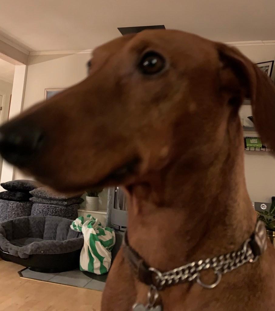 Einar, som stökat runt i huset medans matte lagat mat, är väldigt intresserad av det där mufflonfåret.