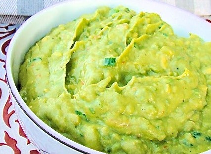 Mixa kött från 2-3 avocados (hos oss går det ofta åt mer än så) med 2-3 finhackade vitlöksklyftor och limesaft till önskad syrlighet. Lägg gärna till en näve koriander och/eller hackad chili eller chilisås (Sambal oelek eller Tabasco exempelvis). Ibland – när jag inte får tag på tillräckligt många och bra avocados – drygar jag ut med lite creme fraiche. Det blir ju ingen äkta guacamole men jättegott ändå. Salta och peppra och smaka av. Somliga mixar även i hackad tomat men det brukar inte jag göra.