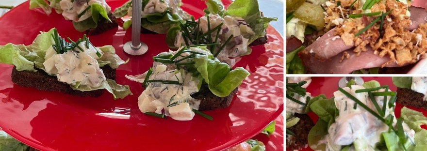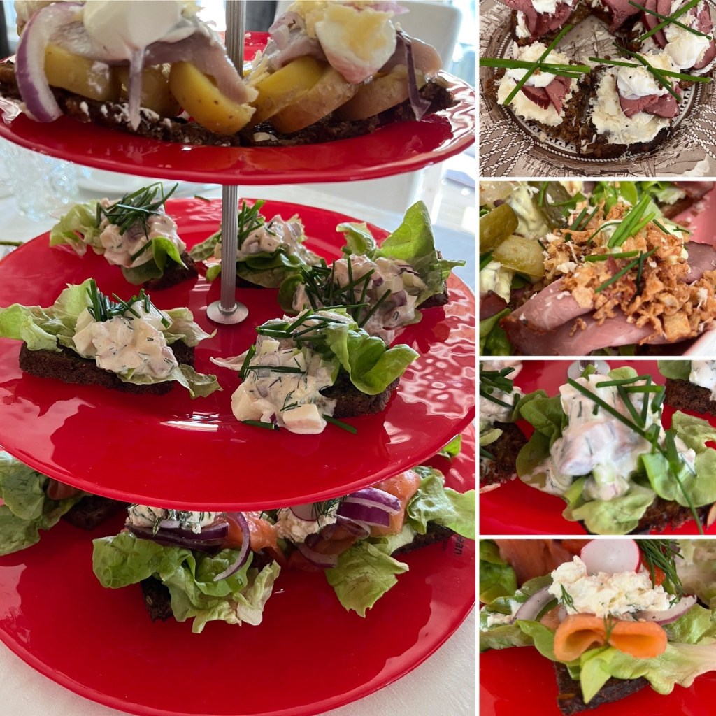Jag är väldigt förtjust i den danska idén om att sätta ihop en meny med matiga smørrebrød. Alla de gånger jag varit i Danmark har det slunkit ner både en och annan godbit av denna mångsidiga ”smörgås”. Med såväl fisk som kött och vegetariska toppings finns det garanterat en favorit till alla. Här har jag några varianter med bland annat kallrökt lax, gubbröra, inlagd sill, rostbiff, rökt älgkött och avocado.