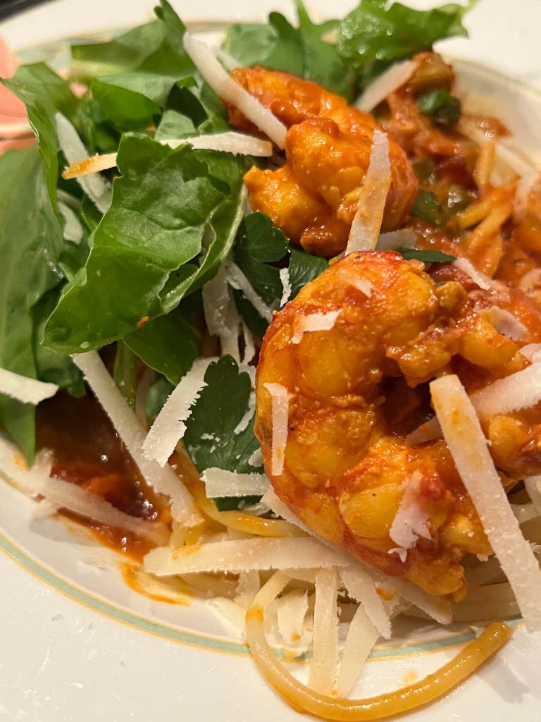 När jag får önska mig något i matväg blir det ofta en pasta med skaldjur. Det finns många goda men en favorit är en variant med smak av tomat, saffran och kapris. De lärde tvistar om huruvida en pasta med skaldjur ska serveras med ost eller inte. Jag säger med och det ska vara parmesan eller pecorino.