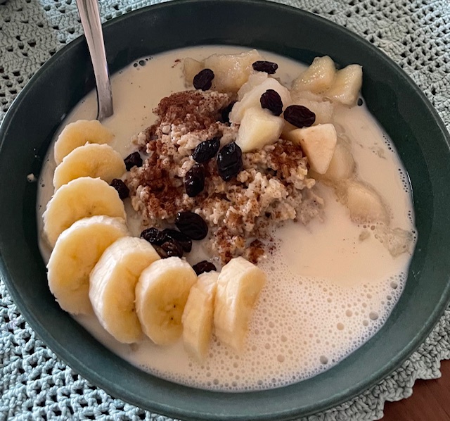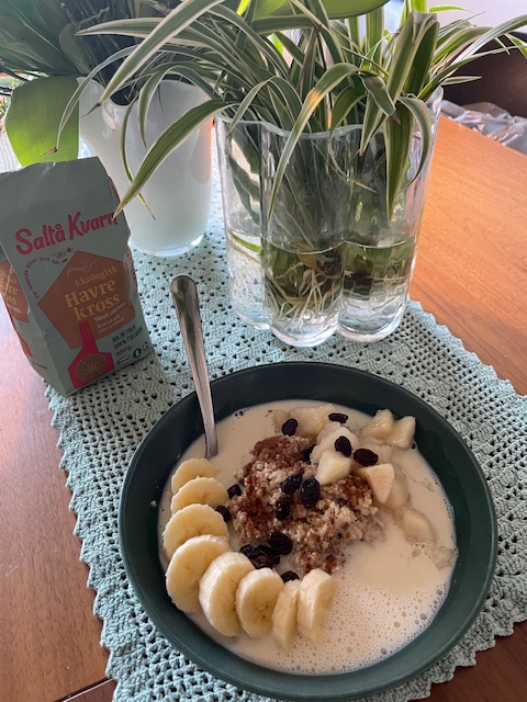 Tips: Jag kokar gärna gröten med vatten och havredryck men annan vegetabilisk dryck, som mandel, eller vanlig mjölk blir också utmärkt.