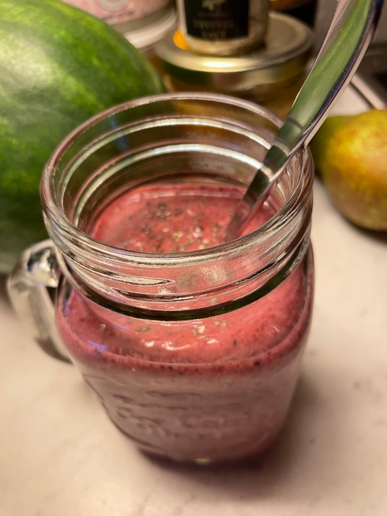 Med frysta bär och frukt blir det lite glass över frukosten och slinker ner hos vilken kräsen unge som helst. Även till mellis. Jag gillar när den inte är helt slät men det gör man såklart som man vill.
