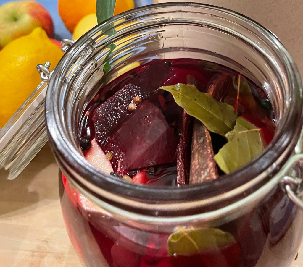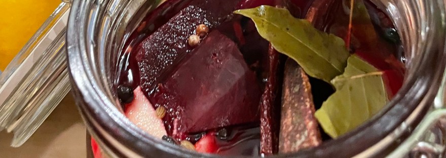 Jag hade en massa fina rödbetor hemma och då blev det inläggning. Rödbetor är ju goda till så mycket – kalops, pytten, köttbullemackan, Janssons och så vidare. Och så är de ju så vackra att titta på!